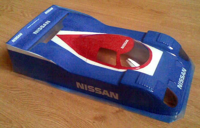 ![]() Karosérie byla doplněna krycí fólií na skla kabiny i předních světel Jedná se o karosérie vozů z počátku 90. let, kdy patřily k tomu nejrychlejšímu, co závodilo na americkém kontinentu. Jednalo se o auta ze seriálu IMSA, což byla americká obdoba například závodu 24 hodin v Le Mans či Mistrovství světa sportovních prototypů. Právě Nissan představil NPT90 Turbo jako nástupce veleúspěšného vozu Nissan GTP ZX Turbo. ![]() Součástí byly i samolepky s nápisy Nissan podle skutečného vozu Pro závod Moravské Le Mans série nebyl vůz zatím vůbec vyzkoušen. Pohonnou jednotkou však bude zřejmě osvědčený set Nowak 13,5T s regulátorem téhož výrobce. Pokud se vzhledem k počasí nepodaří udělat první testovací metry během tohoto týdne, bude vyzkoušen v rámci víkendových závodů ve Frýdku Místku, pravděpodobně na trati Speed Arena. Rovněž jezdce z východních Čech čeká poslední možnost vyzkoušet své vozy na závodech v Hradci Králové. ![]() Vůz plně funkční a pojízdný, žel zatím bez startovního čísla ![]() ![]() Originál při závodě v Road Atlantě 1991