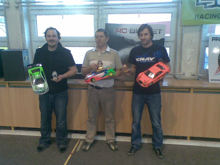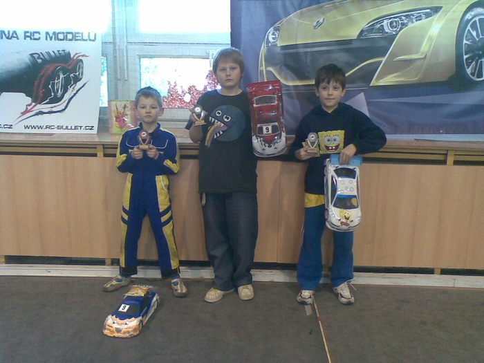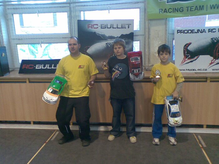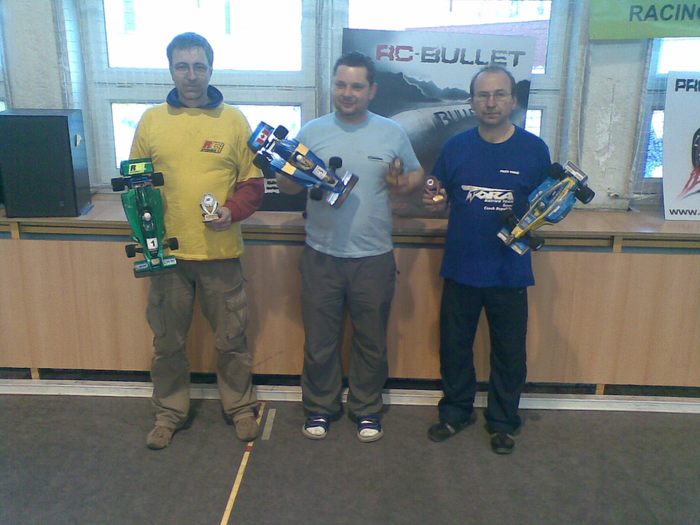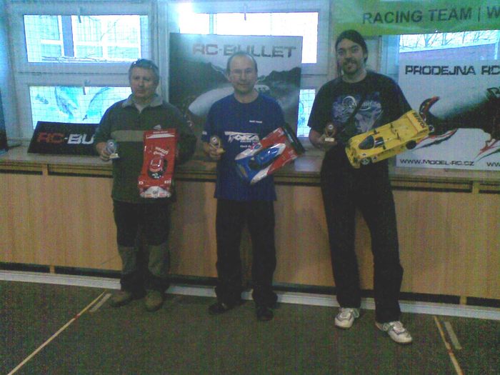 Pátým závodem zimní sezóny pokračoval MSP v Rychvaldu. Na startu nejprestižnější kategorie 2WD Open nastoupilo 11 jezdců, ale plných 9 z nich pomýšlelo na stupně vítězů! A bylo to opravdu vyrovnané od první rozjížďky až do třetího finále. V rozjížďkách se nedařilo lídrovi šampionátu Pavlu Rajdusovi, který se potýkal s špatnou adhezí předku způsobenou opravdu již ojetými mechy. Na poslední jízdu tedy obul nové Jaco a výsledek se dostavil v podobě zajetí nejrychlejší kvalifikace a tedy pole position. Dlouho to již vypadalo, že před ním bude startoval Libor Holub, ale nakonec se musel spokojit s druhým místem. V samotném závodě došlo těsně po startu k chybě Libora Holuba, když v první levé zatáčce trefil puklici a rázem se propadl na poslední místo, tedy šesté. Finálovky rozdělili jezdce na dvě jízdy, což bylo vzhledem k rychlosti a vyrovnanosti pole rozumné. Po 12 kolech jsme se rozloučili s Pavlem Rajdusem, jehož vůz vyrobil při nájezdu na cílovou rovinku salto a odnesla to zadní osa. Zhruba od druhé a půl minuty se ujal vedení Pavel Karel sledován Romanem Krejčím, Tomášem Rajdusem, Luďkem Maléřem a Liborem Holubem. Celé pětice jezdců jela ve vláčku těsně za sebou téměř 4 minuty a bylo to opravdu o nervy. Nesměla se udělat jediná chyba, to by byla okamžitě ztráta pořadi. V závěru začal tlačit Tomáš Rajdus na Krejčího, který se také pokoušel zrychlit a tak se oba dotahovali ještě blíž k Pavlu Karlovi. Nakonec se ale na pořadí nic nezměnilo a všech 5 jezdců profičelo cílem s nájezdem 31 kol. Ve druhém finále potkala smůla Pavla Karla, který se potýkal s problémy s přijímačem ve voze. Neustále mu vypínal. Cíl tedy spatřil, ale z posledního místa. Tentokrát se opět bojovalo o první místo prakticky celý závod. Smolařem byl Pavel Rajdus, kterému v jednom kole nezapočítal chip a tak se propadl až na nelítostné páté místo. Fantasticky zajel Tomáš Rajdus s vozem LMP2, tedy s předělávkou na DTM 30mm kola! Vyjel si i několikasekundový náskok a zvítězil opět před Romanem Krejčím. Libor Holub se musel spokojit se třetím místem, když těsně porazil Maléře. Třetí jízda byla po několika kolech přerušena, i když ani nevím co se přesně událo, ale postupně skoro všechny vozy stály :) Opět to byl boj, ale ten těsný trval pár kol, pak se dva vozy srazily a oběma proletěl Krejčí, kterého to stálo ztracenou jízdu, protože se odporoučelo přední uchycení karosérie a se ztrátou několika kol se už v takém závodě nedá nic dělat. Konečně vše vyšlo Pavlu Rajdusovi a tak třetí jízda mělo opět jiného víteze. Nakonec tedy zvítězil v tomto opravdu zajímavém závodě Tomáš Rajdus před Pavlem Karlem a Romanem Krejčím. Ve finále B spolu urputně bojovali Rostislav Zapletal, Pavel Melicher a Jan Košík. Zatímco Melicher se objevil po dvouměsíční pauze, Košík byl v této kategorii nováčkem. Oba pocítili, jak rychle jde kupředu vývoj 2WD a že držet krok se špičkou vyžaduje jezdit a jezdit.. Poslední dvě místa obsadil Jirka Veverka Jan Vician, oba startující v MSP zimním poháru poprvé.